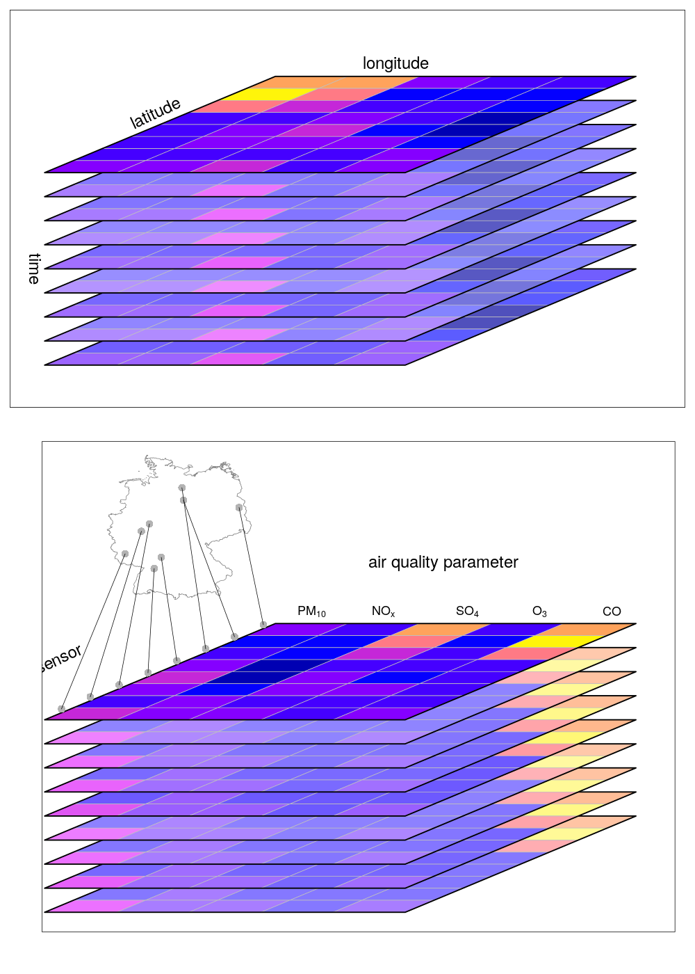 stations) can be an sf object and temporal data (ts) can be a tsibble object.long form